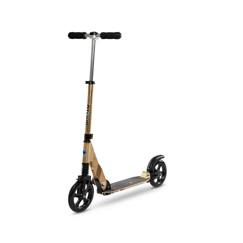 Vi har fundet Micro Suspension – Bronze – Sa fra Micro hos Homeshop.dk i kategorien Børn Leg Udendørs Leg Løbehjul. Micro Suspension – Bronze – SA0065Micro Suspension har støddæmper på både for- og baghjul, og giver derfor helt enestående køreegeneskaber. Ideelt til storbyen, hvor underlaget ofte ujævmt og mindre ensartet.Løbehjulet kan justeres fra 84-106 cm, og kan d